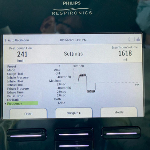In mechanically ventilated patients cough assistance is performed through the application of rapidly alternating positive and negative pressures, which approximates a normal cough. Mechanical insufflation-exsufflation protocols generally consist of 3–5 cycles of positive pressure ranging from + 15 cm H2O to a maximum pressure of + 40 cm (insufflation), followed by a negative pressure ranging from − 15 cm H2O to a maximum of − 40 cm H2O (exsufflation). This technique augments inspiratory and expiratory flows to improve sputum mobilization. Oscillation is utilized at a different Hz frequency on either phase of the procedures or both to enhance the mobilization of secretions. The operator can determine the length of each phase and a pause may be appended after that. Tracheal suctioning is usually done after the treatment.